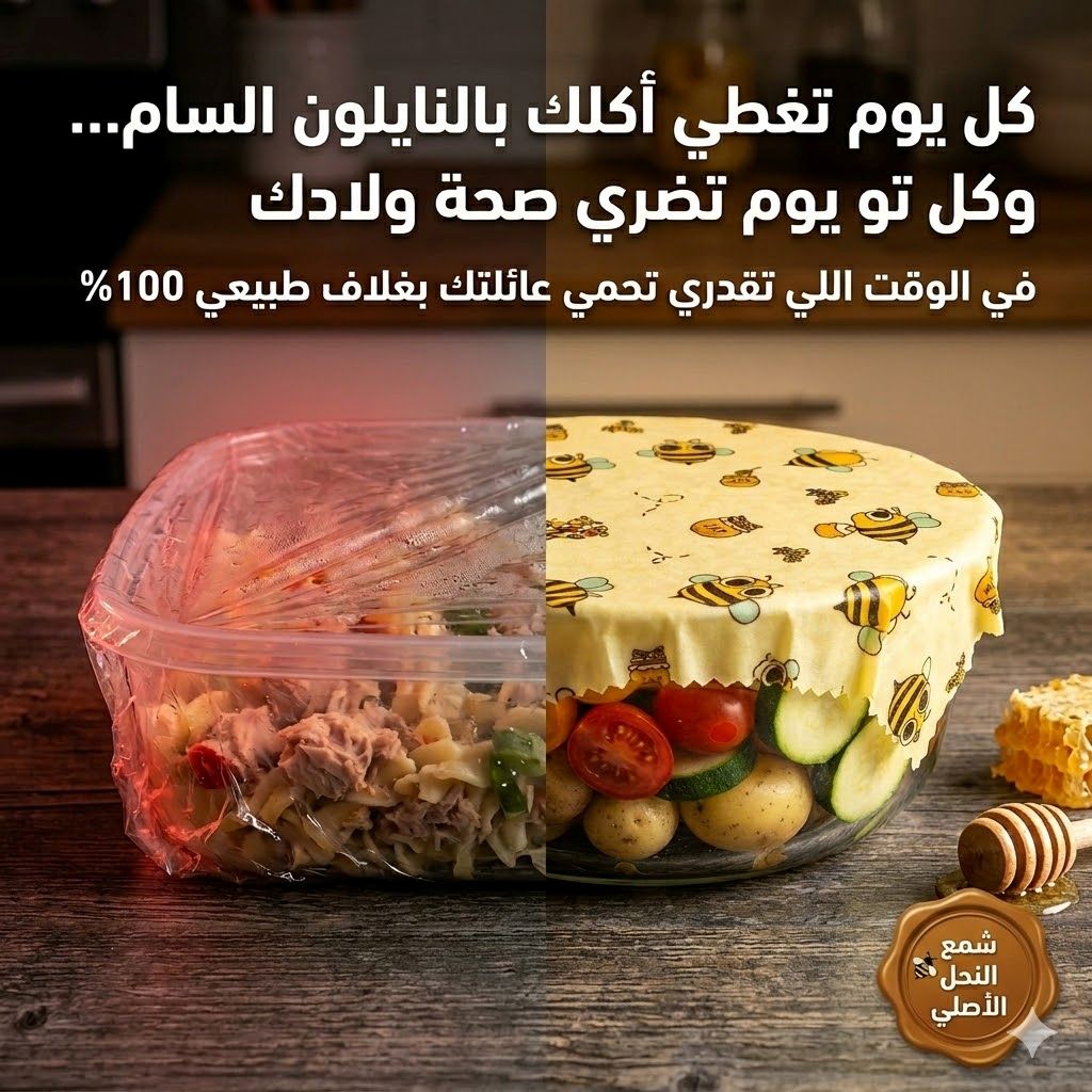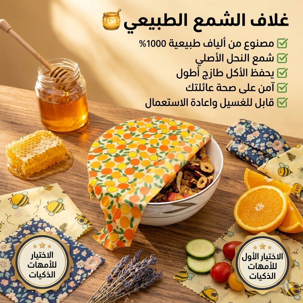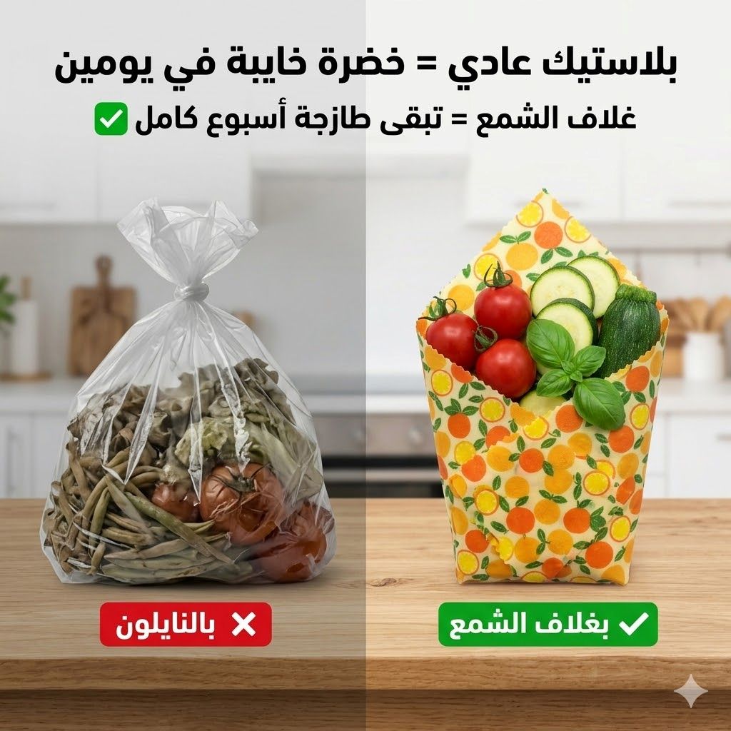 جربي غلاف الشمع الطبيعي 100% — يحفظ خضرتك وفواكهك طازجة أسبوع كامل في الثلاجة 🥦🍎