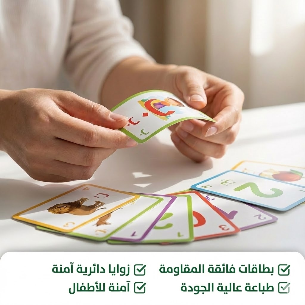 كل البطاقات ملونة، متينة، وسهلة الاستخدام ليدين الصغار، ومجمَّعة داخل صندوق واحد أنيق يناسب الاستخدام في المنزل أو الروضة، ويجعل التعلم لعبة ممتعة بعيداً عن الشاشات 📚✨.