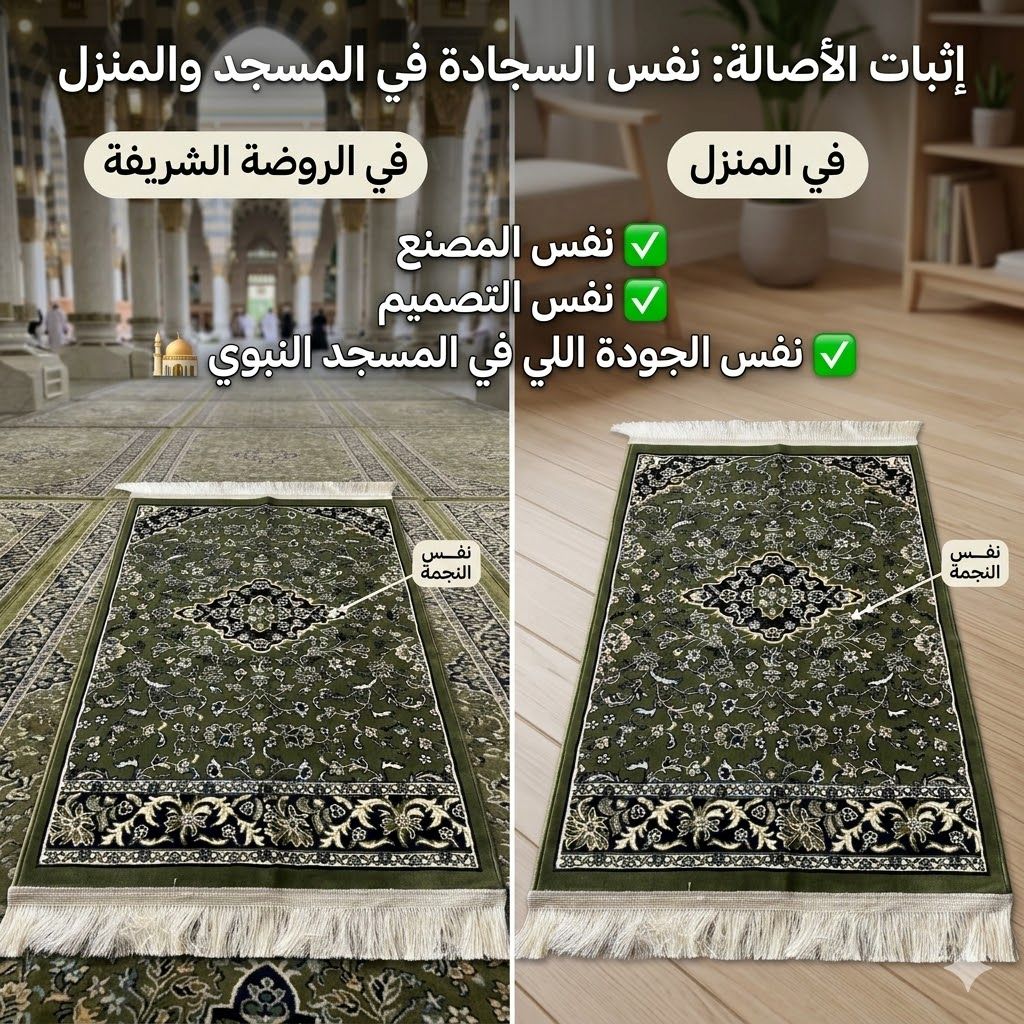 ✅ مش سجادة عادية — هذي نفس السجادة اللي في المسجد النبوي، من نفس المصانع في أرض الحجاز