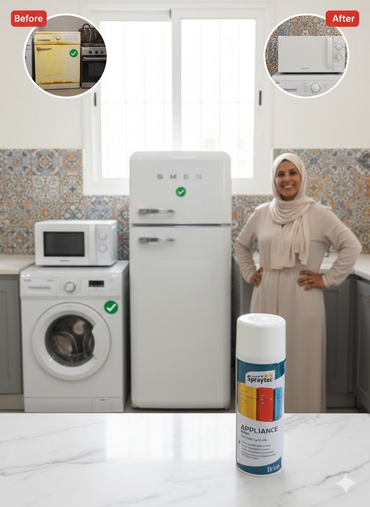 بومبة الطلاء Spraytec بروفيسيونال – اللون الأبيض اللماع يخلي الثلاجة تاعك تبان كيما خرجت من المحل 💪 لمعة خطيرة و نتيجة احترافية مضمونة !