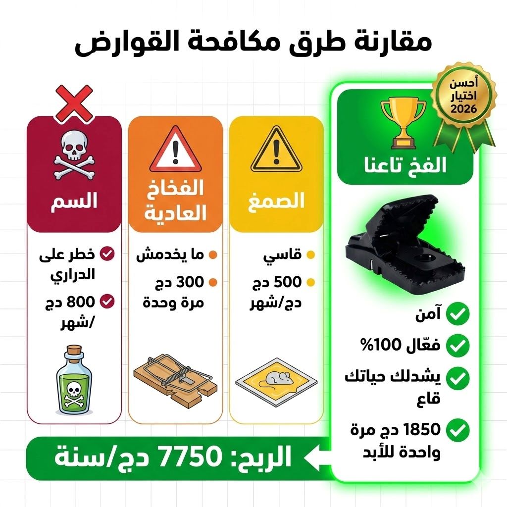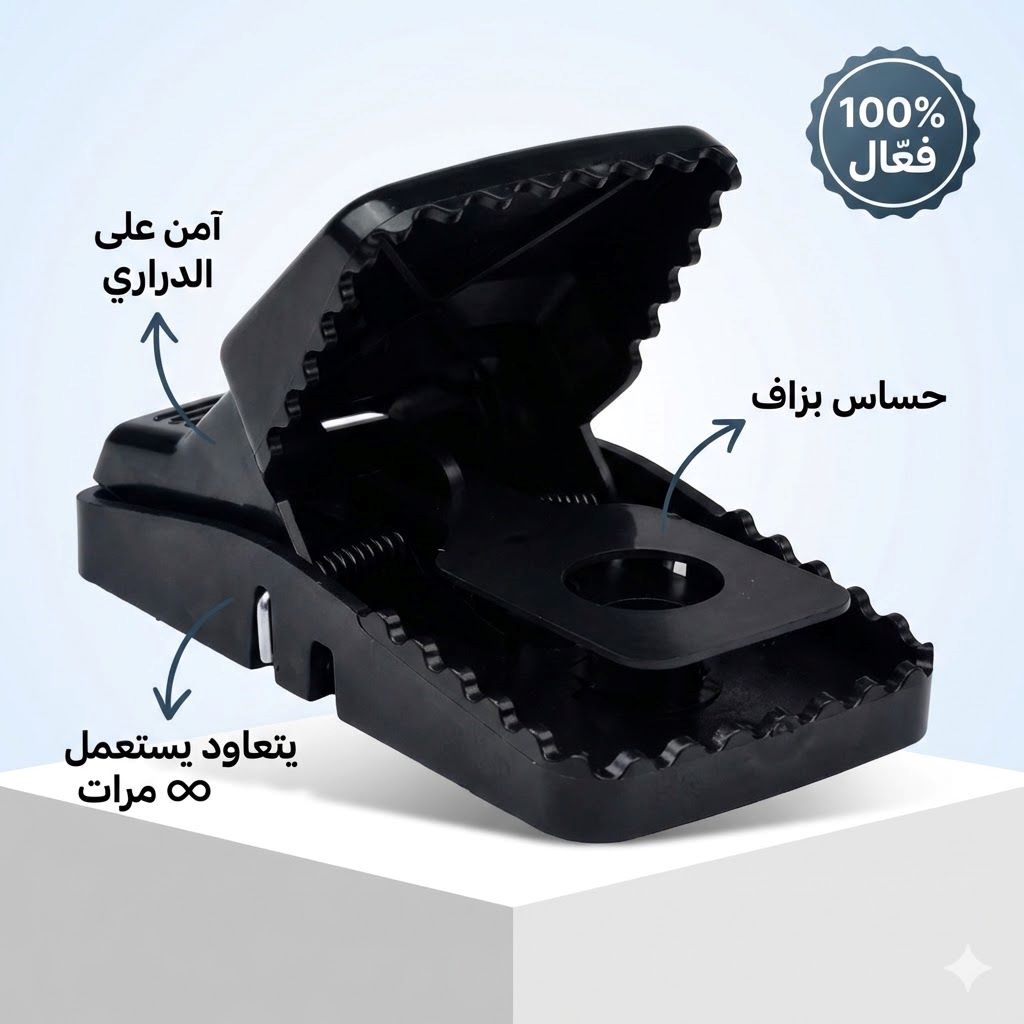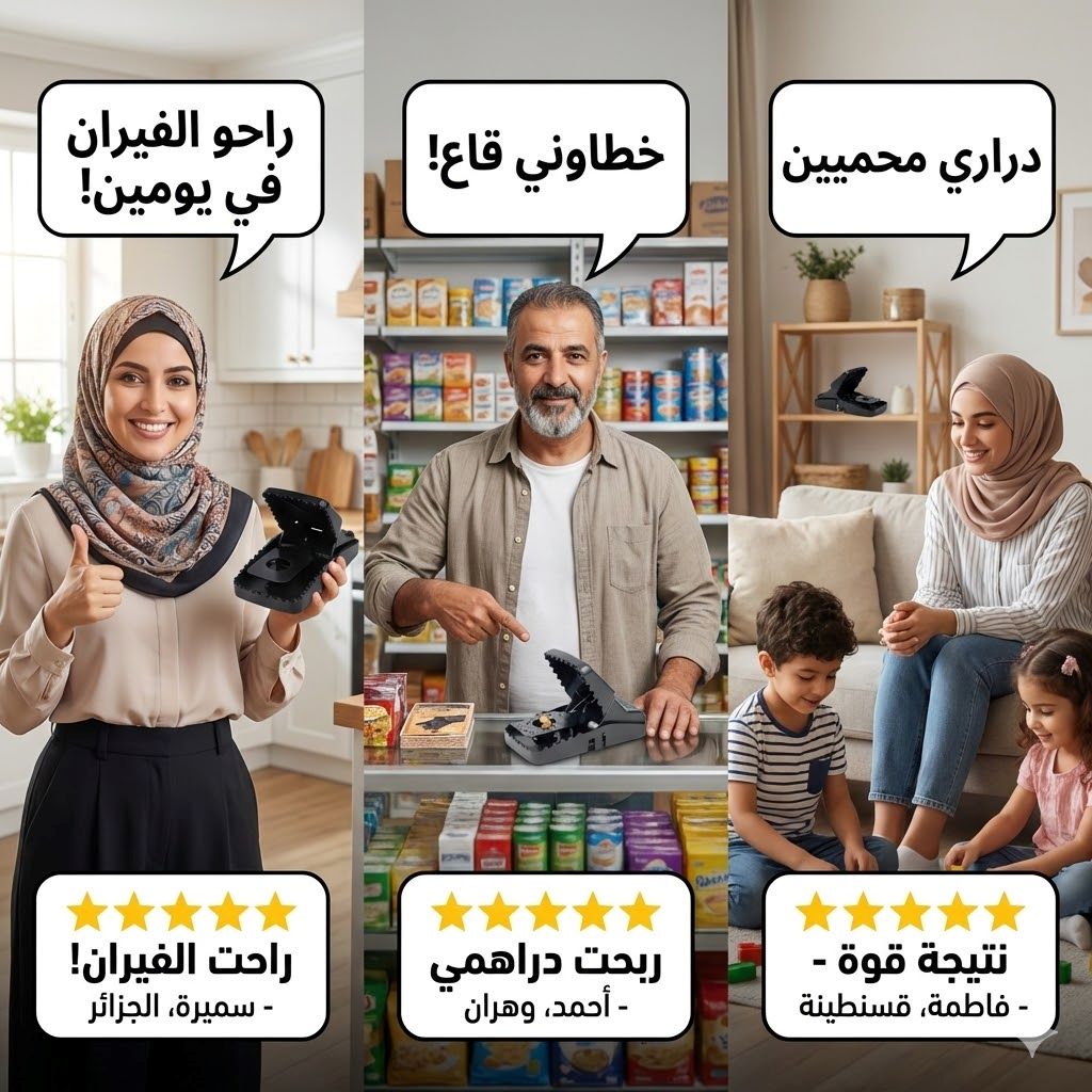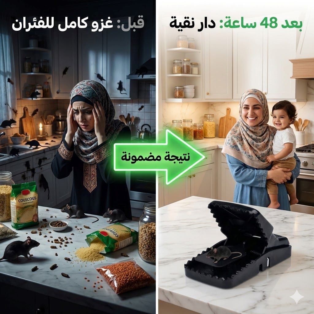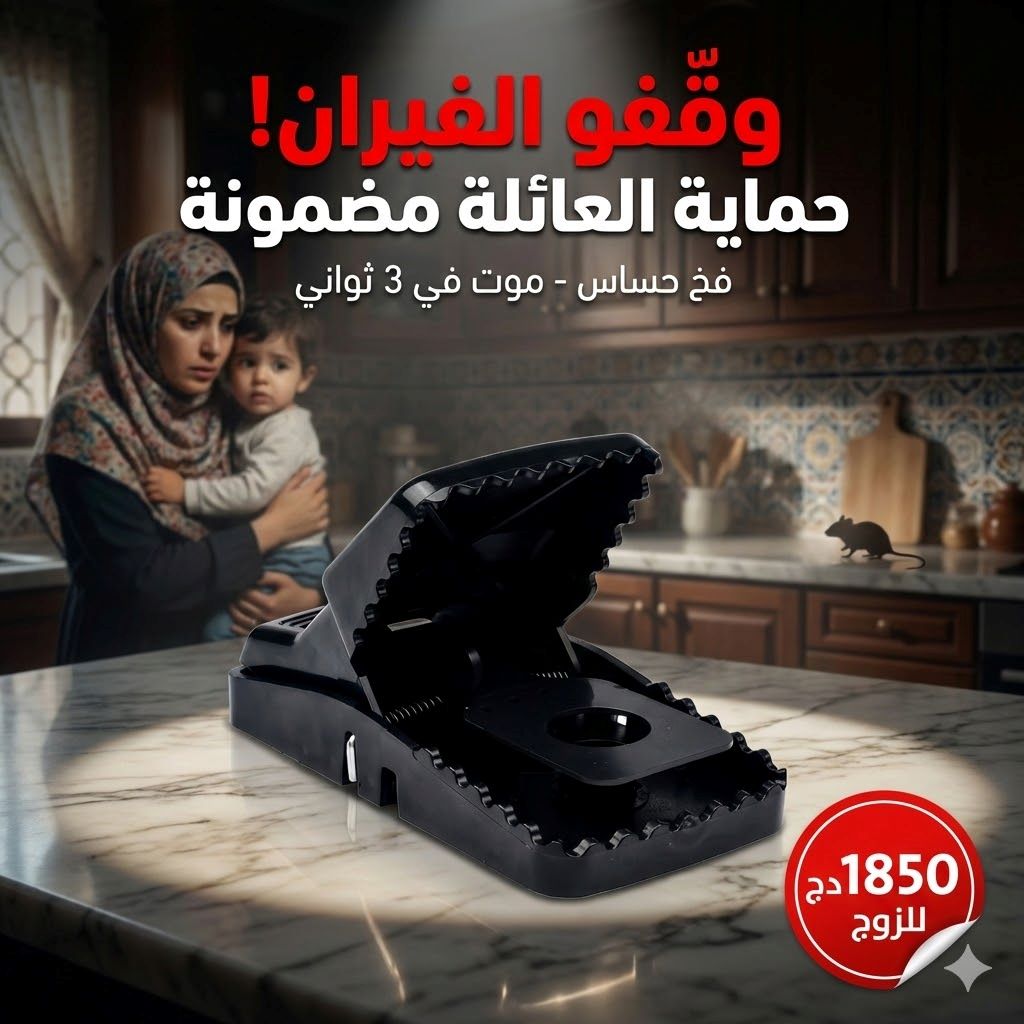 راك تعاني من الفيران 🐭 لي يهدمو الماكلة 🍞 ويخوّفو الدراري 👶؟ الحل جاك! الفخ تاعنا بتكنولوجيا الحساسية العالية يقضي على الفيران في 3️⃣ ثواني برك. بلا سم ☠️❌، بلا ريحة، بلا خطر على العايلة 👨👩👧👦✅