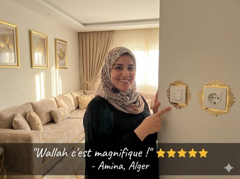💎 إطار زخرفي ذهبي يضيف أناقة فورية للمقابس والقواطع.